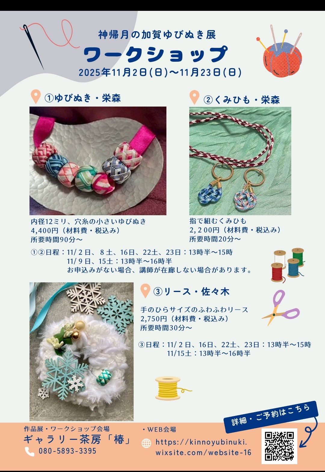 加賀ゆびぬきのお教室、展示会についてお知らせしています。